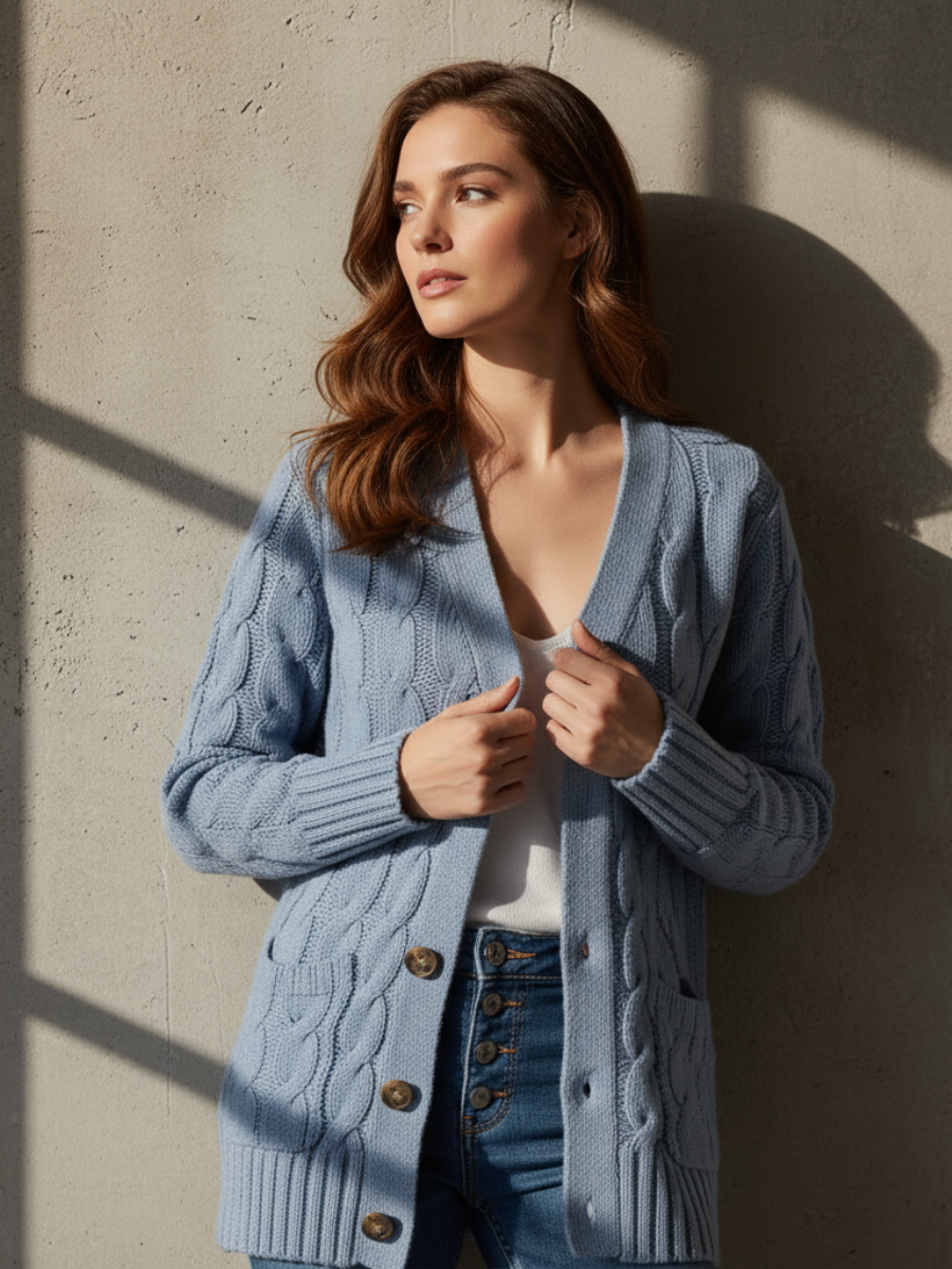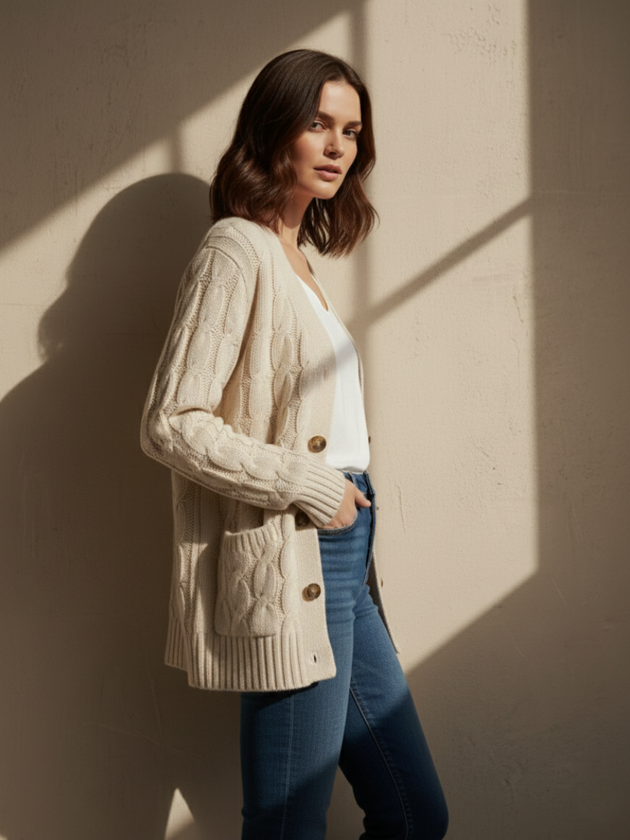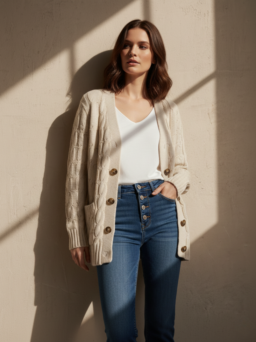 Un cárdigan creado para acompañarte en los días más fríos con estilo y comodidad.